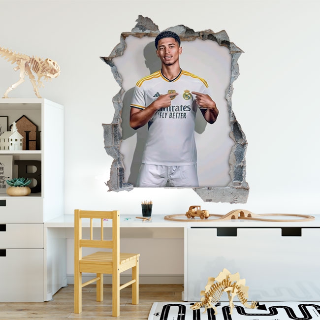 ¡Dale un toque futbolístico a tu espacio con este vinilo decorativo 3D! Este vinilo presenta una ilusión óptica realista de un agujero en tu pared con la figura de Jude Bellingham, el talentoso jugador de fútbol, en acción en Madrid. Perfecto para los fanáticos del fútbol y de Jude Bellingham que desean agregar un toque emocionante a su habitación, sala de estar o área de entretenimiento. Fácil de instalar y de alta calidad, este vinilo decorativo transformará tu espacio con estilo y pasión futbolística.