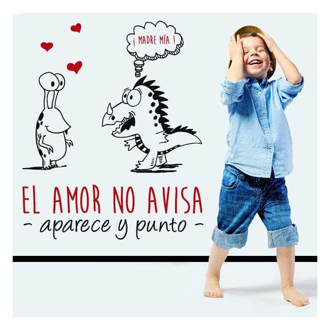 Buscas vinilos decorativos con frases simpáticas para la decoración de interiores o exteriores ?. En Vinilos Casa ® te proponemos este simpático y exclusivo vinilo decorativo "El amor no avisa. Aparece y Punto", con el que podrás decorar paredes, decorar cristales, decorar puertas, decorar armarios, decorar escaparates, decorar tiendas, decorar comercios, decorar objetos, etc... de forma rápida, fácil y muy económica. Este vinilo decorativo es ideal para la decoración de habitaciones infantiles o para la decoración de habitaciones juveniles. A diferencia de otros fabricantes o marcas, en Vinilos Casa ® todos nuestros vinilos decorativos, adhesivos para paredes o pegatinas para paredes son fabricados con materiales de alta calidad, garantizándote así un producto duradero y al mejor precio del mercado. Vinilos Casa ® es la primera marca en ofrecer vinilos de corte multicolor fabricados en una sola lámina "NO MÁS PUZZLES".
