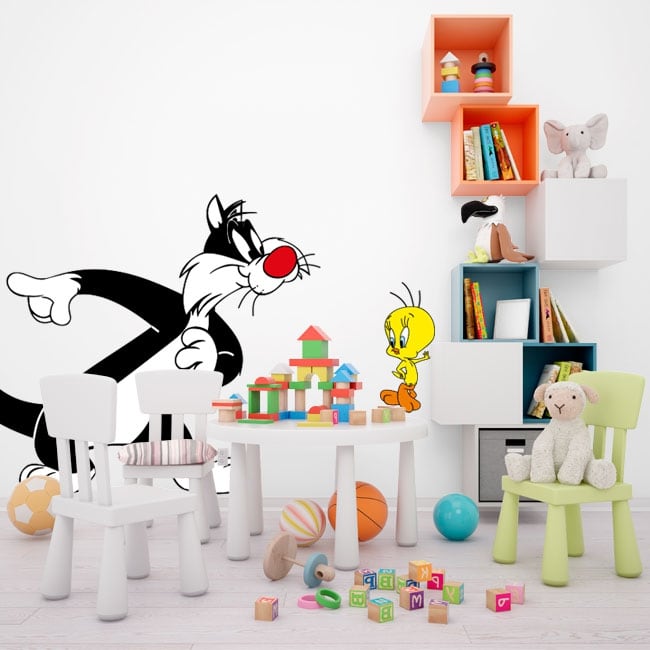 Buscas pegatinas o vinilos de los Looney Tunes ?. En Vinilos Casa ® te proponemos este simpático "Vinilos infantiles PiolÃn y Silvestre el gato", con el que podrás decorar paredes, decorar habitaciones infantiles, decorar colegios, decorar guarderÃas, decorar objetos, decorar armarios de forma rápida, fácil y muy económica. A diferencia de otros fabricantes o marcas, en Vinilos Casa ® todos nuestros vinilos decorativos, adhesivos de paredes o pegatinas de pared son fabricados con materiales de alta calidad, garantizándote asà un producto duradero y al mejor precio del mercado.