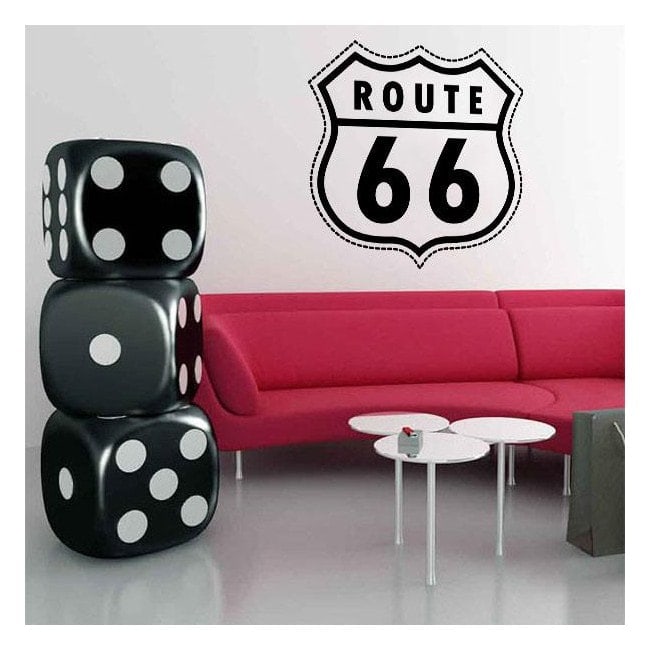 Quieres darle un toque Americano a la decoración de tu espacio ?. Vinilos Casa ® pone a tu alcance este original Vinilo Decorativo con el diseño de la conocida señal "Route 66" "la Ruta 66", que fué la principal carretera para los veraneantes con destino a Los Ángeles. Con este Vinilo Decorativo podrás darle un toque Americano a la decoración de tus paredes u objetos.